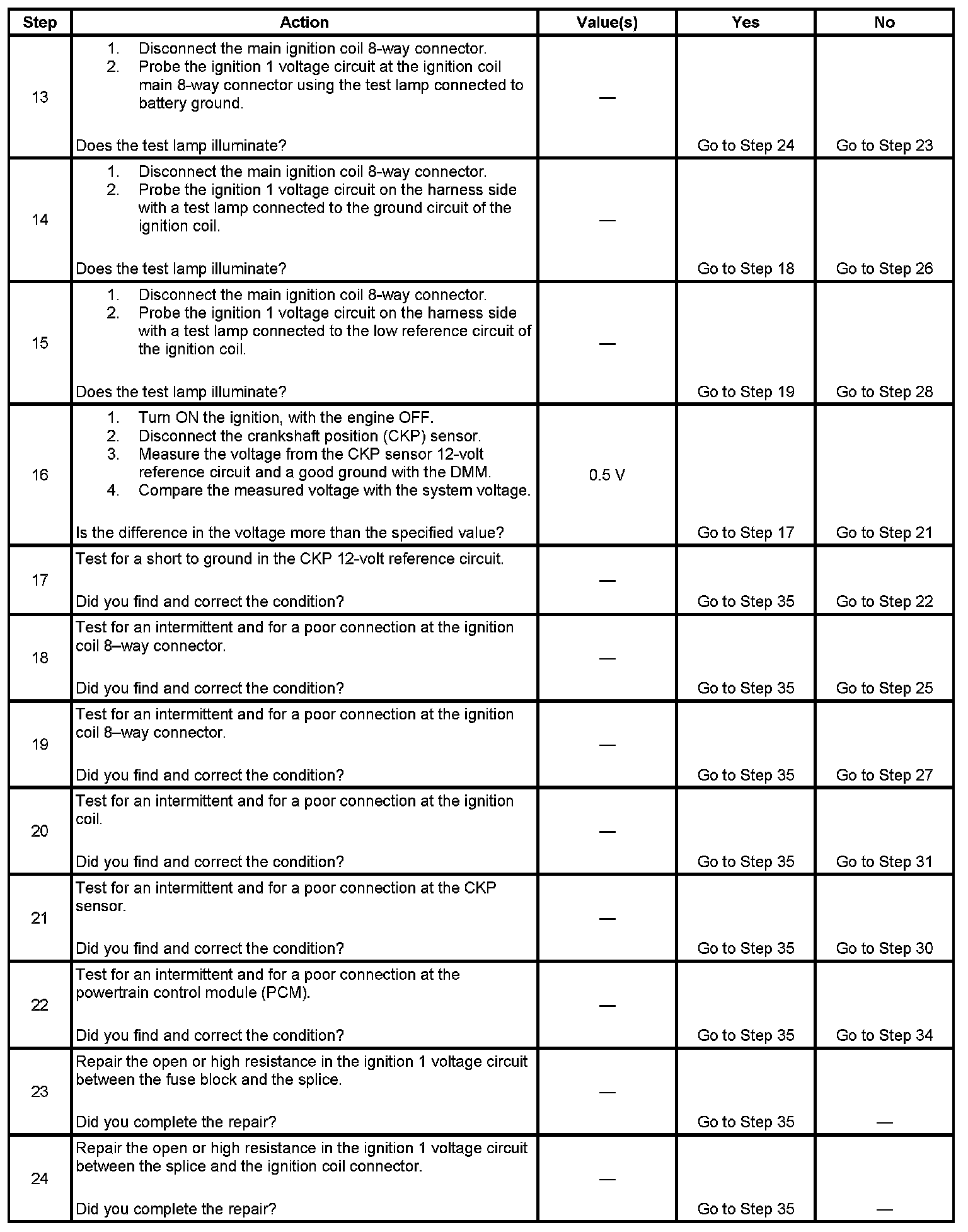 The PCM triggers an ignition coil by grounding the appropriate IC circuit using information from the crankshaft position (CKP) and camshaft position (CMP) sensors.