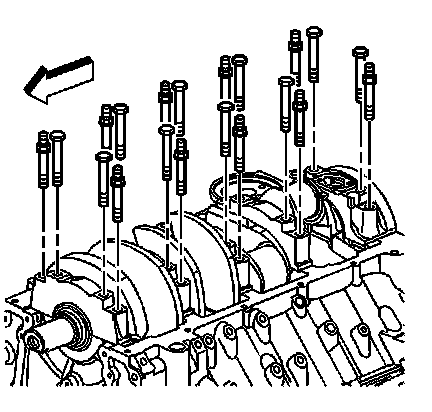 Important: Tighten the crankshaft bearing cap inner bolts before tightening the crankshaft bearing cap outer studs.