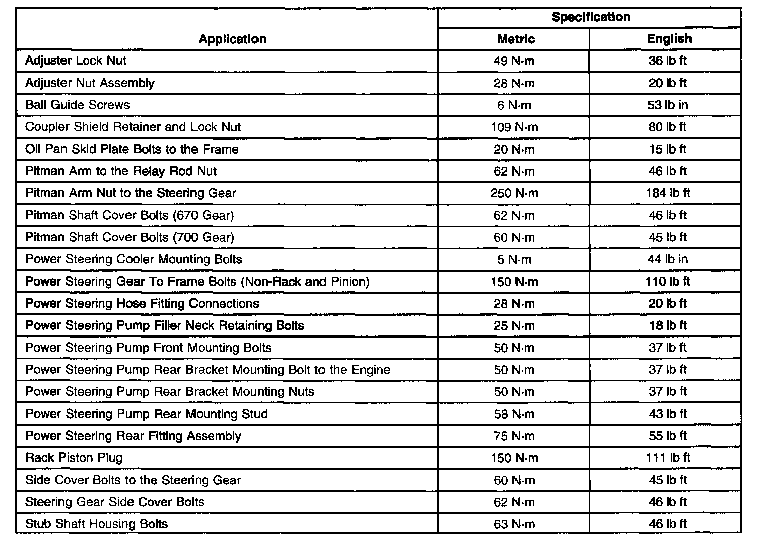 Torque Specifications: