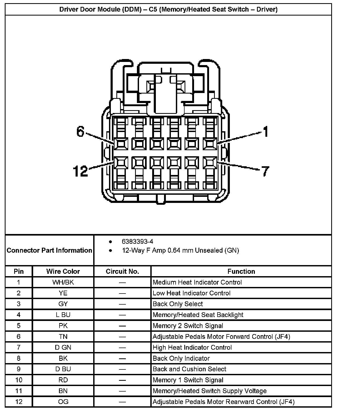 Driver Door Module (DDM) - C5 (Memory/Heated Seat Switch - Driver):