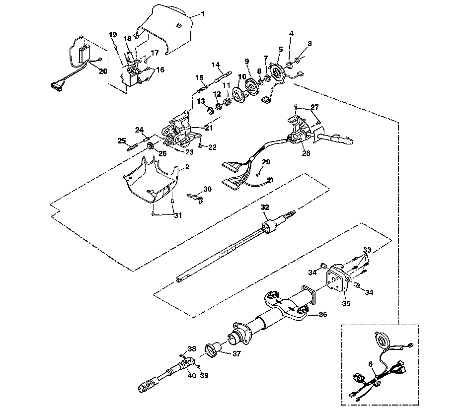 Steering Column Disassembled View (Column Shift Lean Shaft)