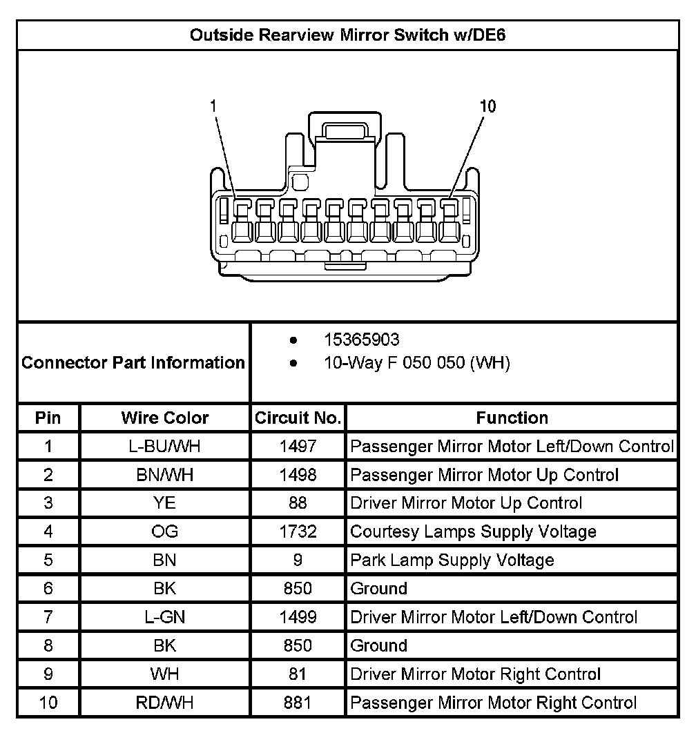 Outside Rearview Mirror Switch With RPO Code DE6: