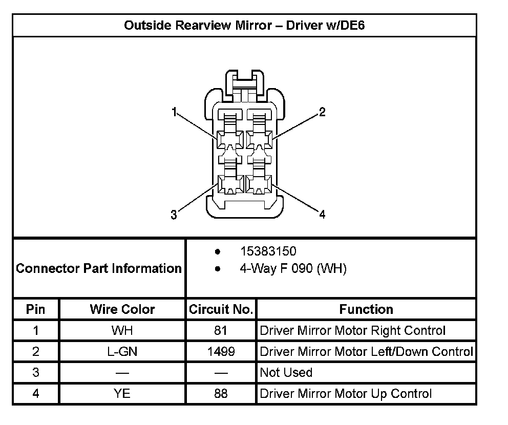 Outside Rearview Mirror - Driver With RPO Code DE6: