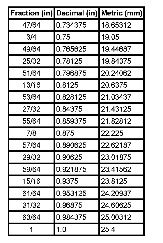 Equivalents - Decimal and Metric