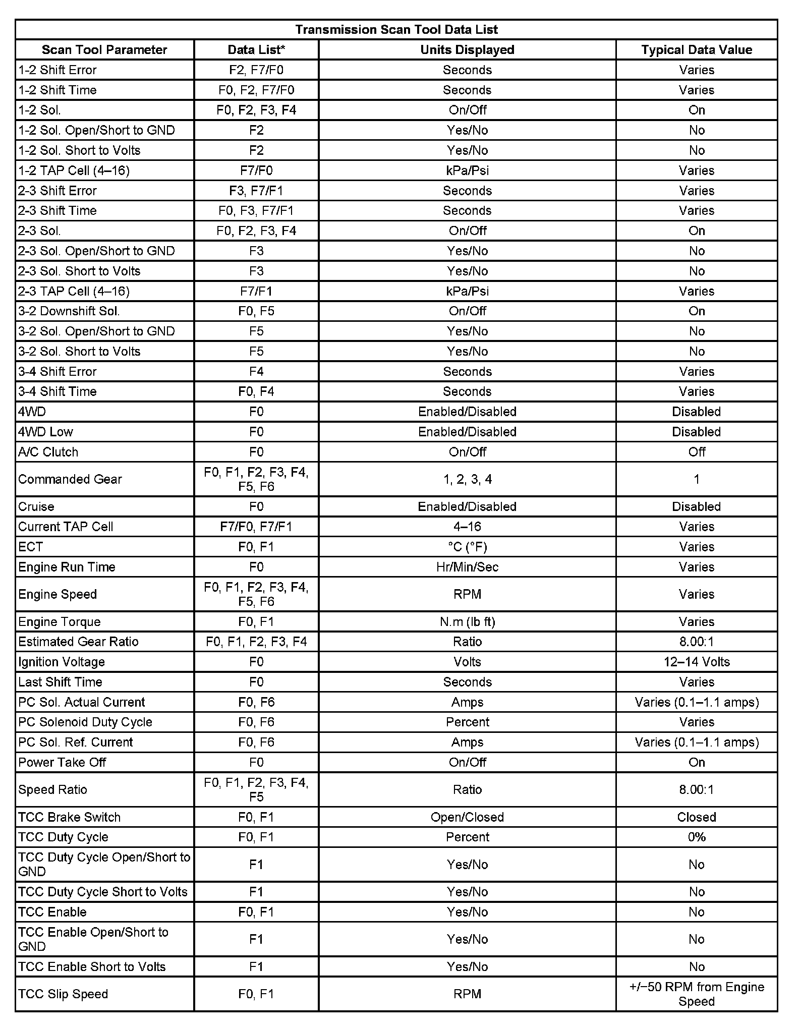 Only the parameters listed below are used in this manual for diagnosing. If a scan tool displays other parameters, the values are not recommended by General Motors for use in diagnosis.
