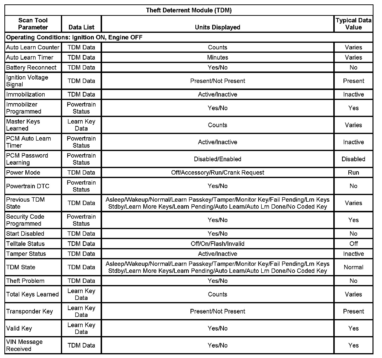 Scan Tool Data List