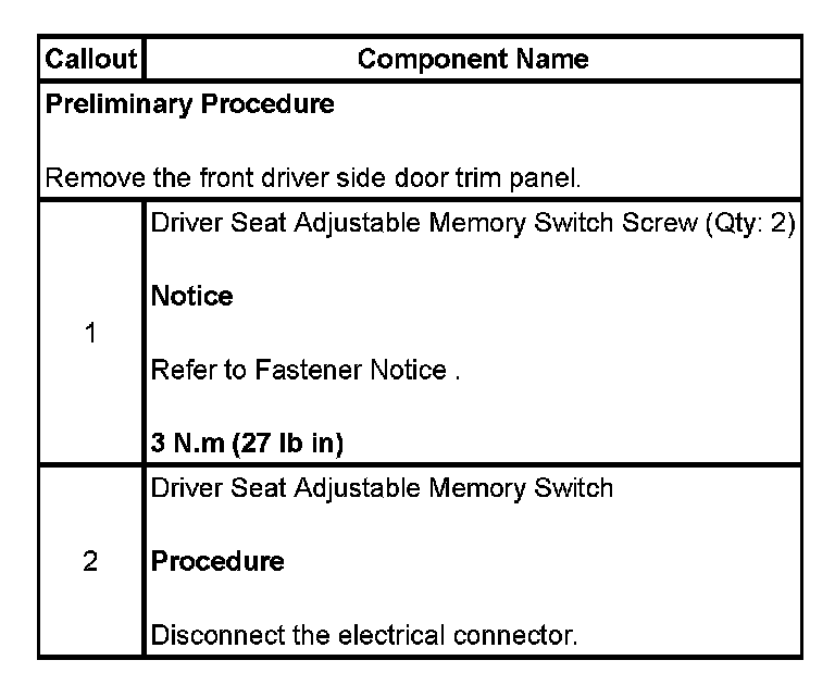 DRIVER SEAT ADJUSTER MEMORY SWITCH REPLACEMENT
