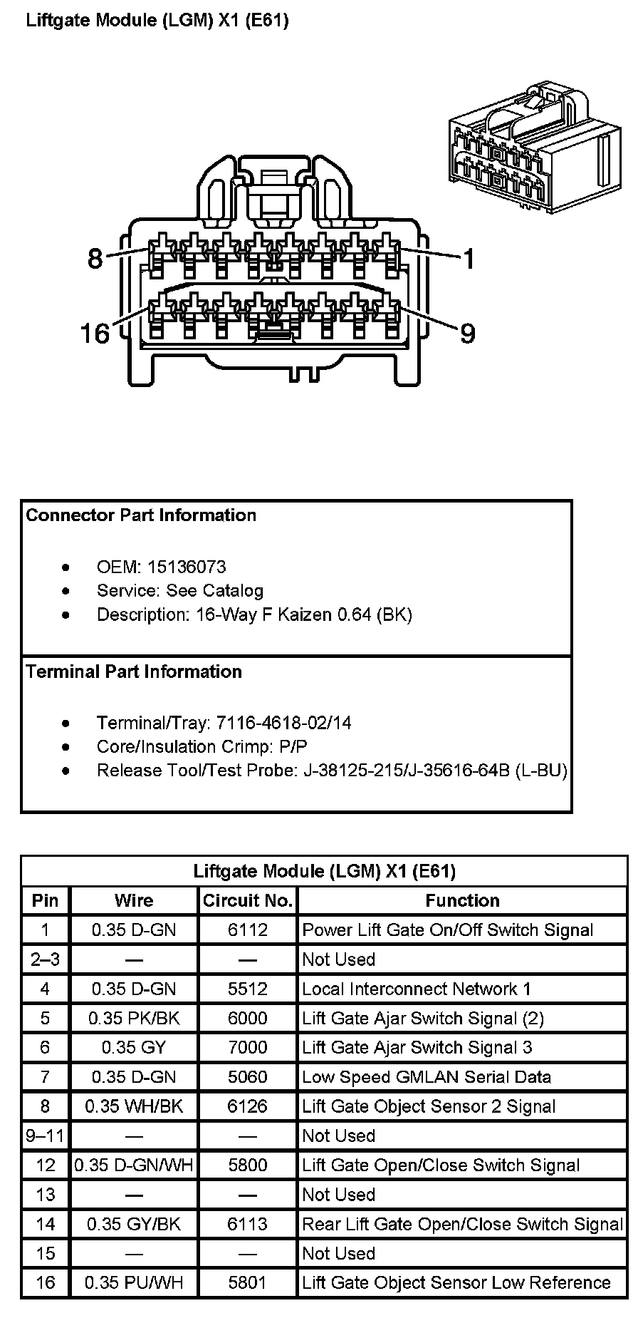 Liftgate Module (LGM) X1 (With RPO Code E61) Pin 1 To 16: