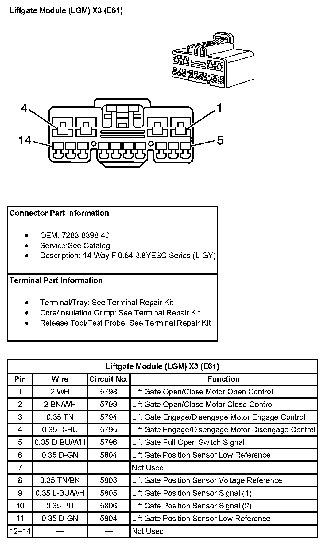Liftgate Module (LGM) X2 (With RPO Code E61) Pin 1 To 14:
