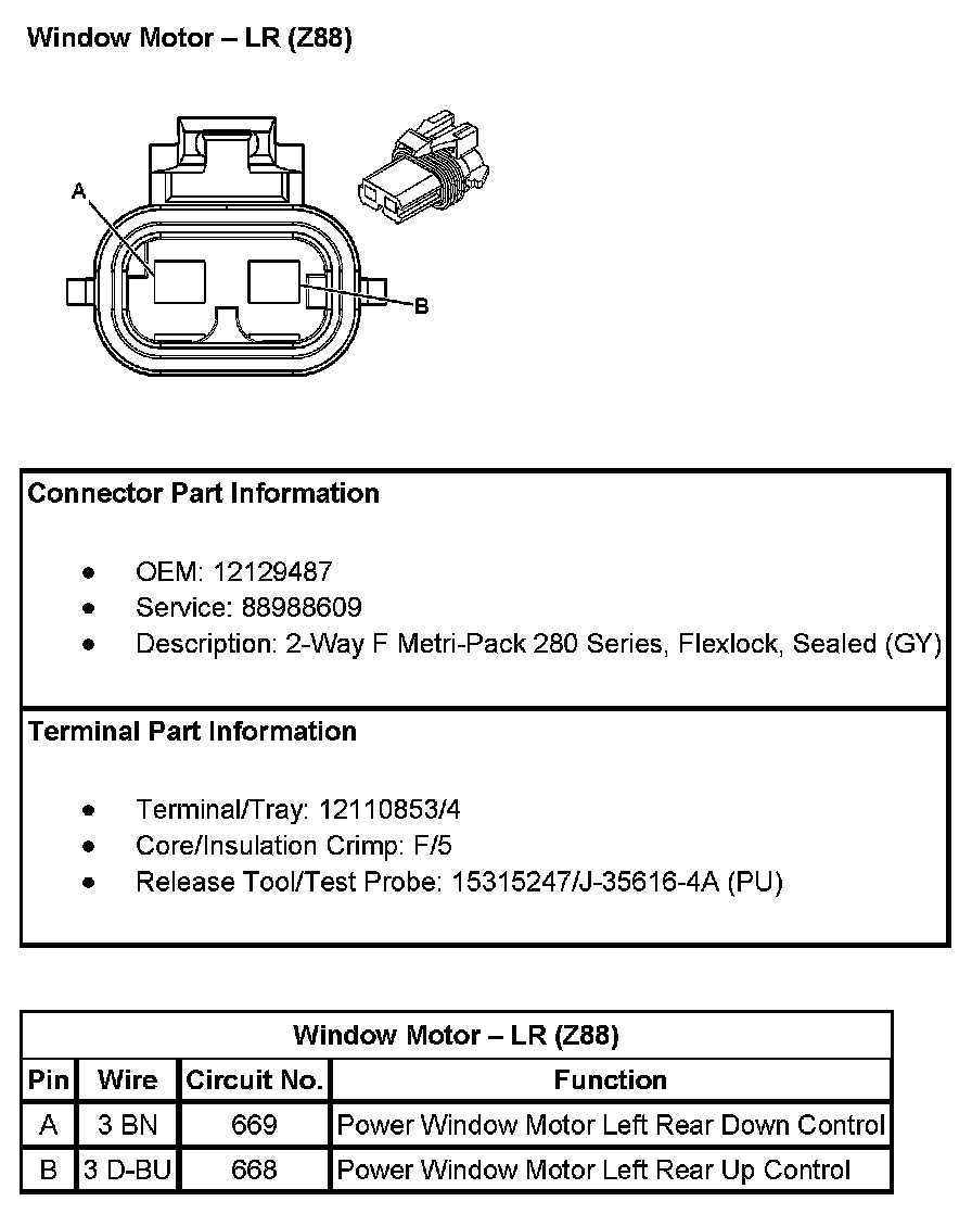 Window Motor - LR (With RPO Code Z88) Pin A To B: