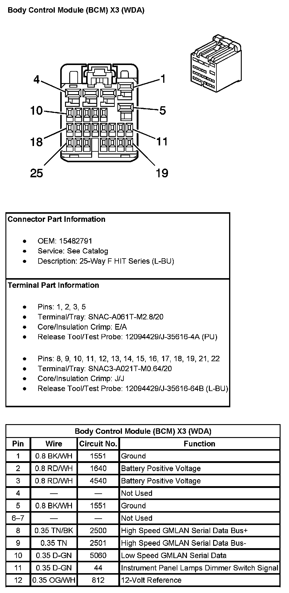 Body Control Module (BCM) X3 (With RPO Code WDA) Pin 1 To 12: