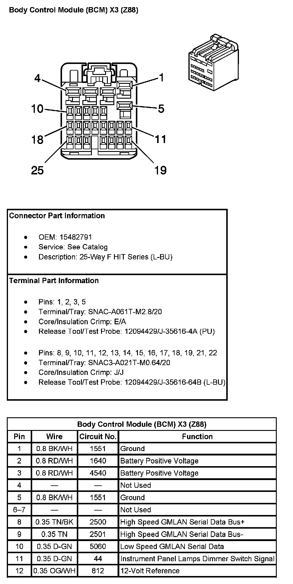 Body Control Module (BCM) X3 (With RPO Code Z88) Pin 1 To 12: