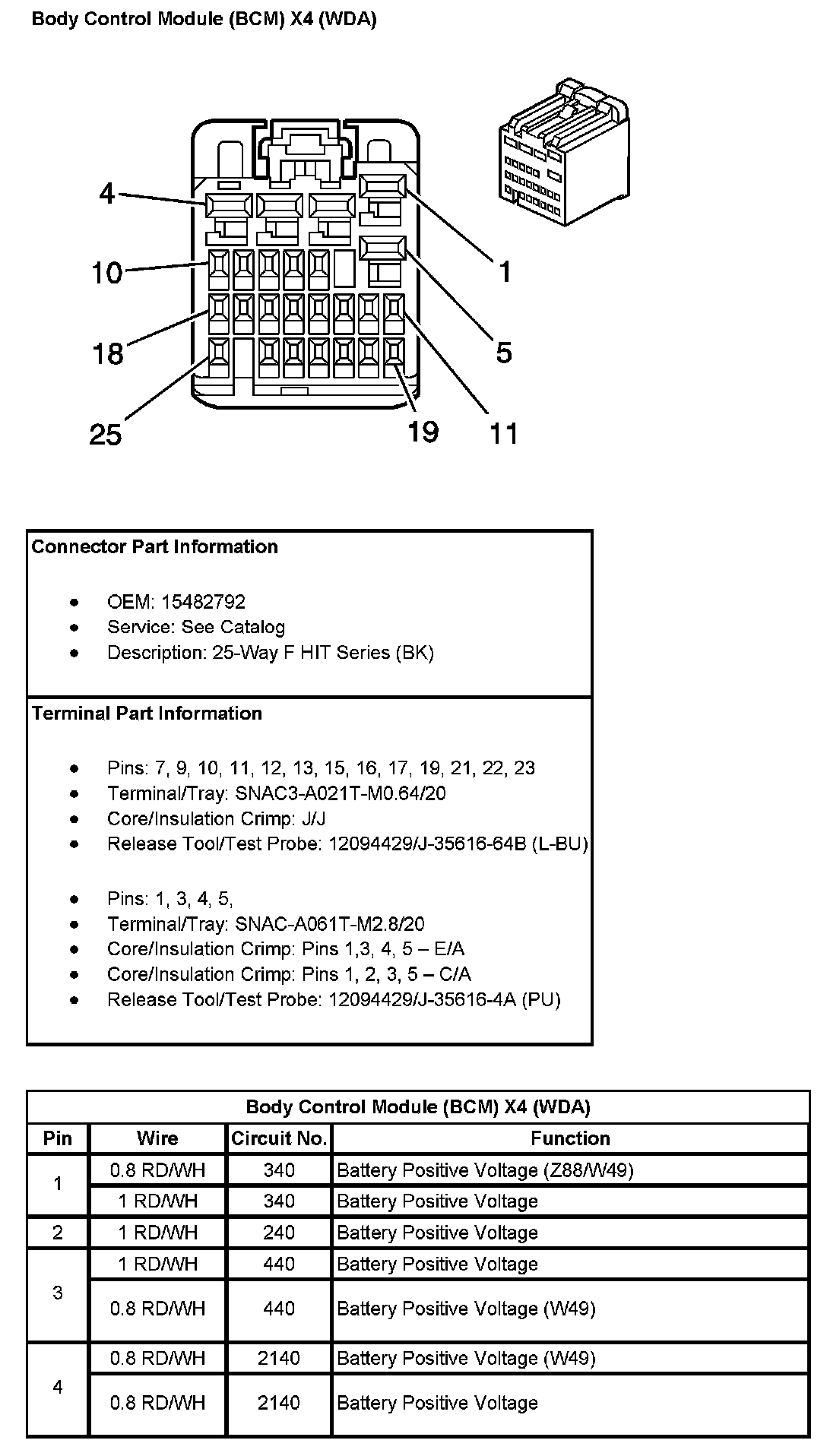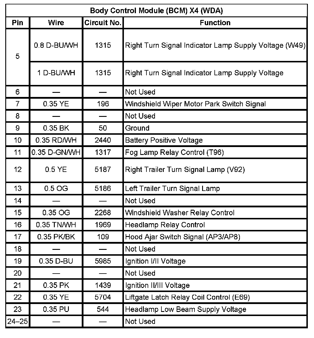 Body Control Module (BCM) X4 (With RPO Code WDA) Pin 5 To 25: