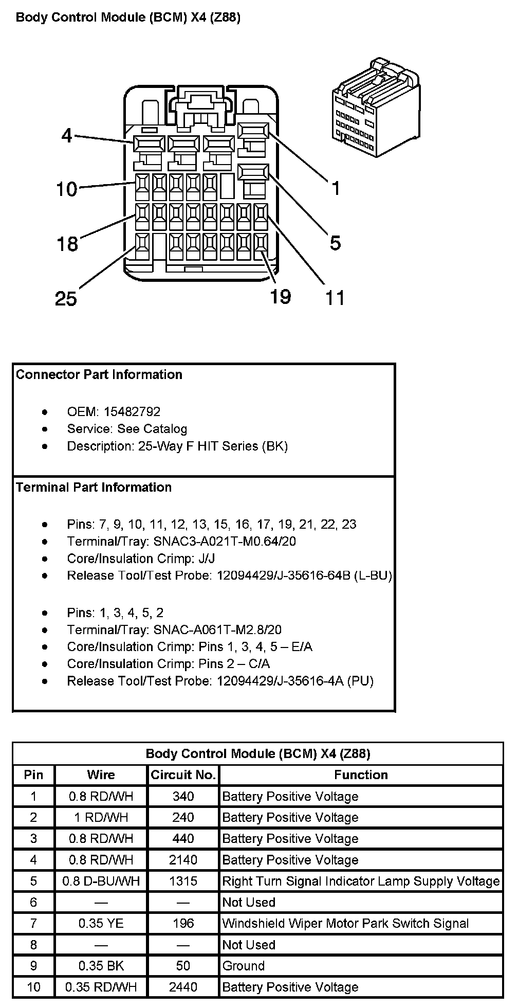 Body Control Module (BCM) X4 (With RPO Code Z88) Pin 1 To 10: