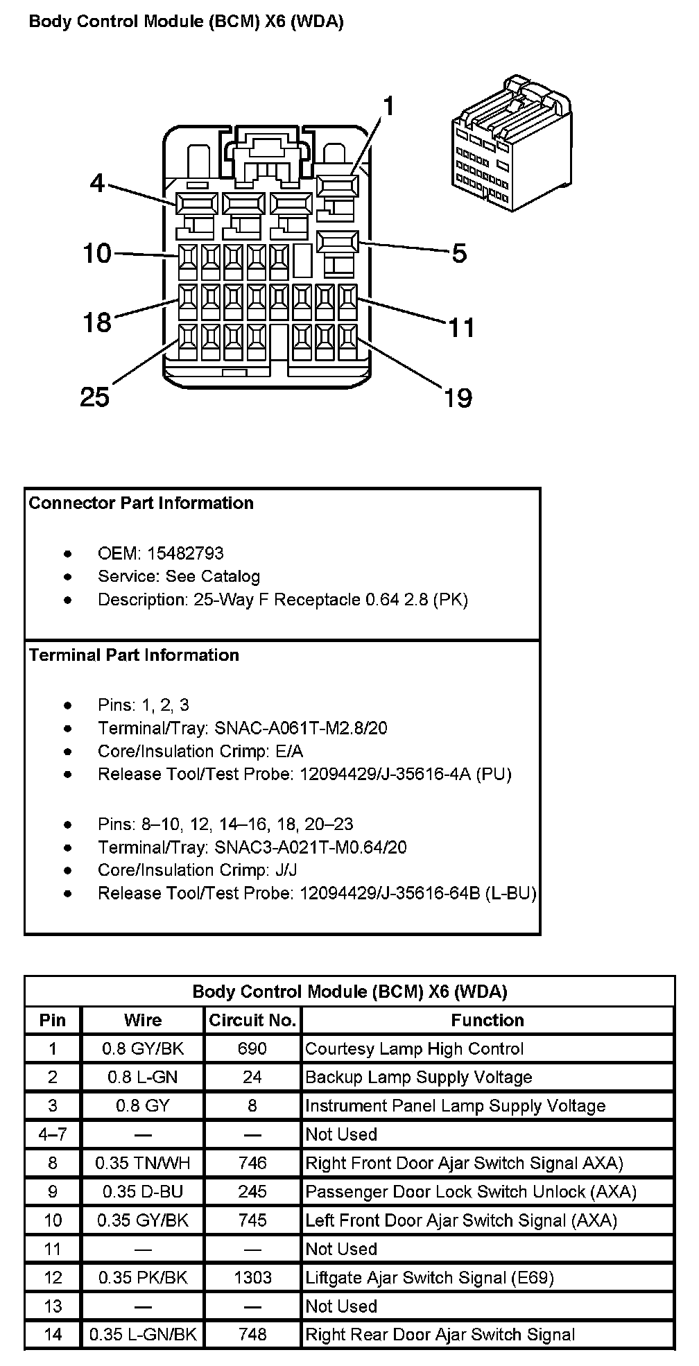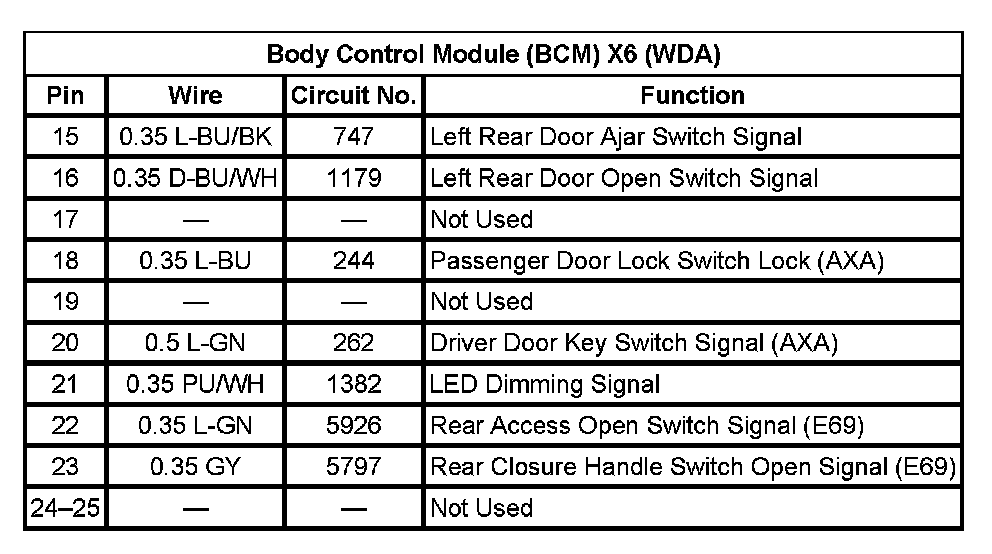 Body Control Module (BCM) X6 (With RPO Code WDA) Pin 15 To 25: