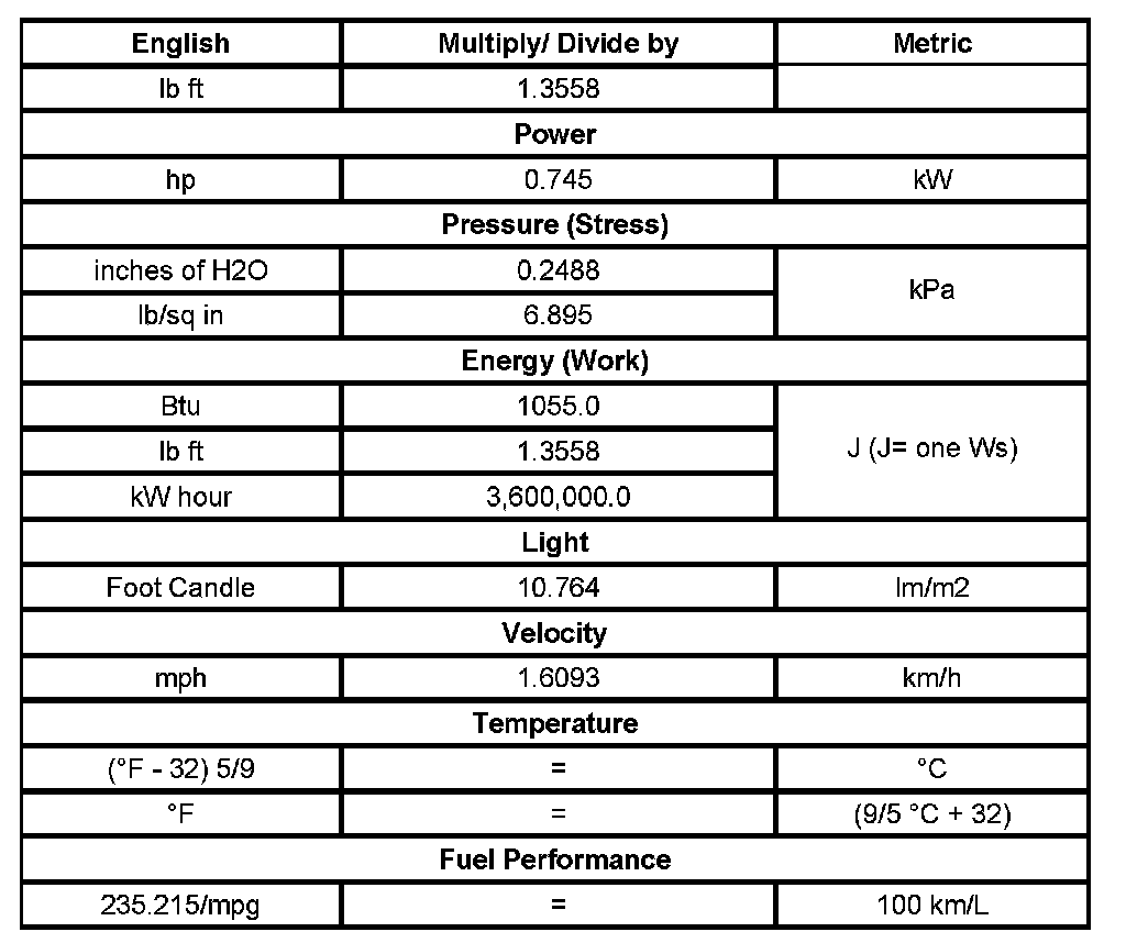 US English/Metric Conversion