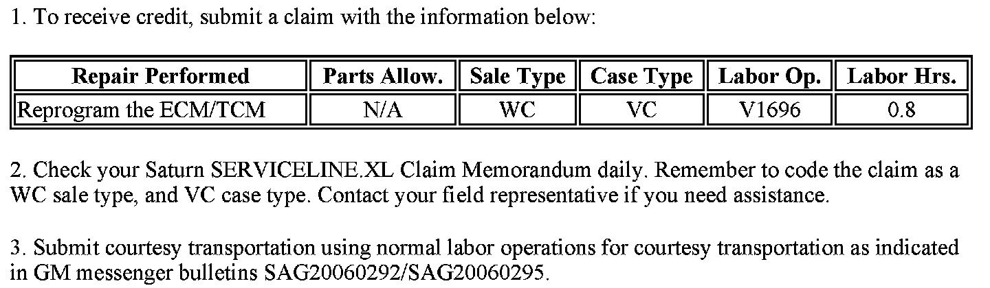 The General Motors Courtesy Transportation program is intended to minimize customer inconvenience when a vehicle requires a repair that is covered by the New Vehicle Limited Warranty. The availability of courtesy transportation to customers whose vehicles are within the warranty coverage period and involved in a product program is very important in maintaining customer satisfaction. Dealers are to ensure that these customers understand that shuttle service or some other form of courtesy transportation is available and will be provided at no charge. GM Dealers should refer to the General Motors Service Policies and Procedures Manual for Courtesy Transportation guidelines. Saturn US retailers should refer to GM messenger bulletins SAG20060292/SAG20060295 for Courtesy Transportation guidelines. Saturn Canada retailers should refer to applicable Home Office letter on this subject.