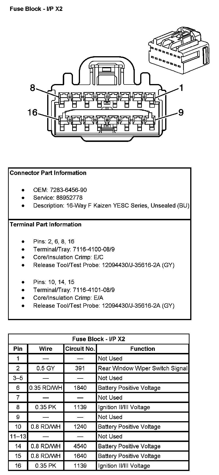 Fuse Block - I/P Top View: