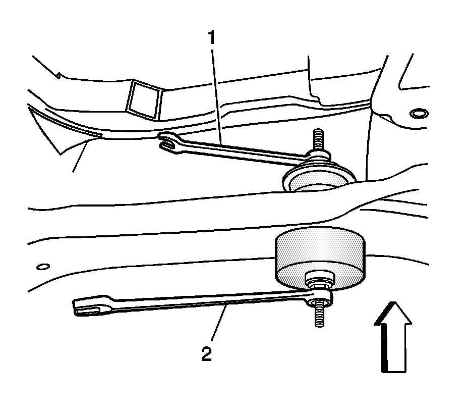 10. While holding the front wrench (1) rotate the rear wrench (2) to remove the bushing.
