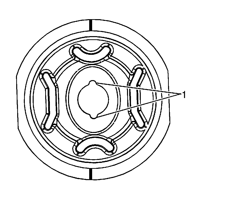 1. Before the installation of the new bushing, use a straight edge draw a line on the new bushing at the 12 and 6 o'clock positions. Ensure that the grooves (1) are at the 12 and 6 o'clock positions.