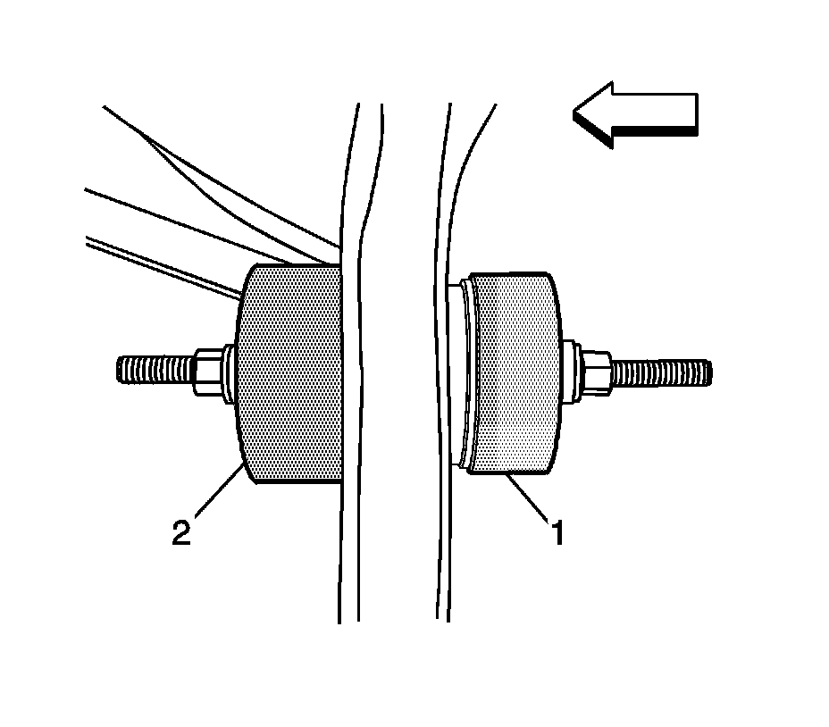 7. Adjust the nuts so that they are touching the J-45725-2 (1) and the J-45725-2A (2).