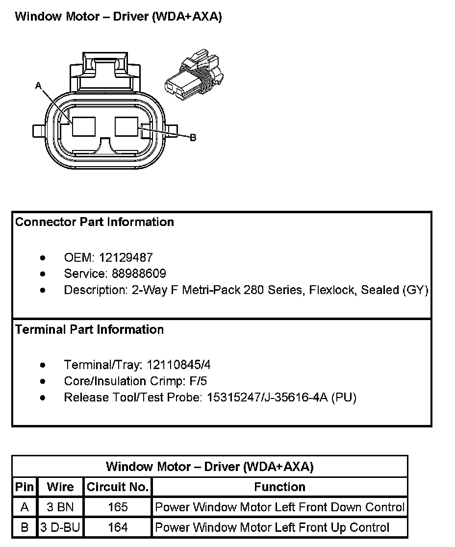 Window Motor - Driver (With RPO Code WDA+AXA) Pin A To B: