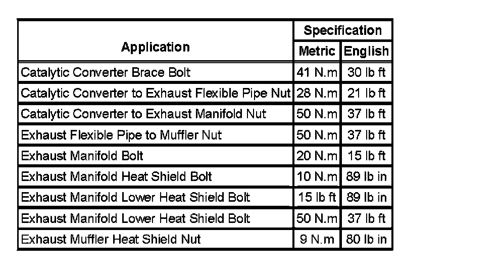 Fastener Tightening Specifications: