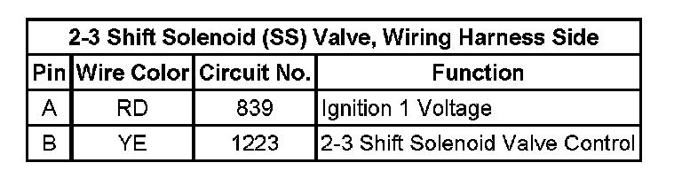 2-3 Shift Solenoid (SS) Valve, Wiring Harness Side: