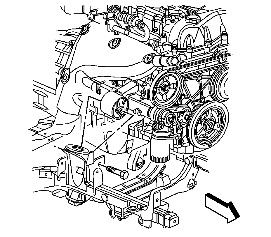 29. Remove the power steering pump mounting bolts ONLY, and position aside.