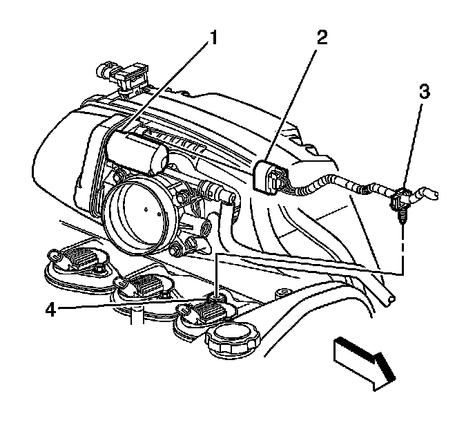 45. Disconnect the engine wiring harness connector (3) from the knock sensor (KS) (1).