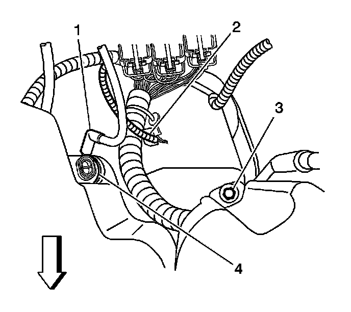 3. Remove the coolant reservoir to wheelhouse fastener (3).