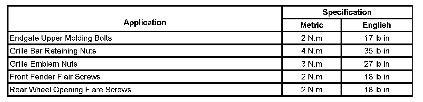 Exterior Moulding / Trim: Specifications
