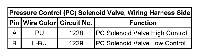 Pressure Control (PC) Solenoid Valve, Wiring Harness Side: