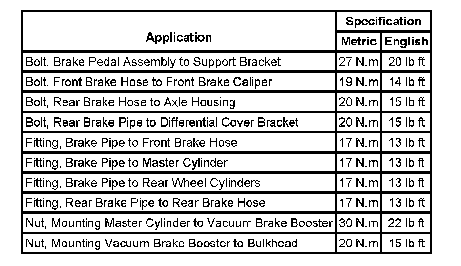 Fastener Tightening Specifications: