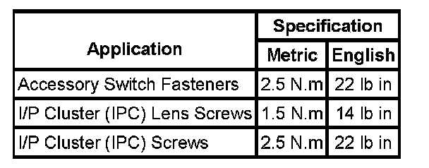 Instrument Panel, Gauges and Warning Indicators: Specifications