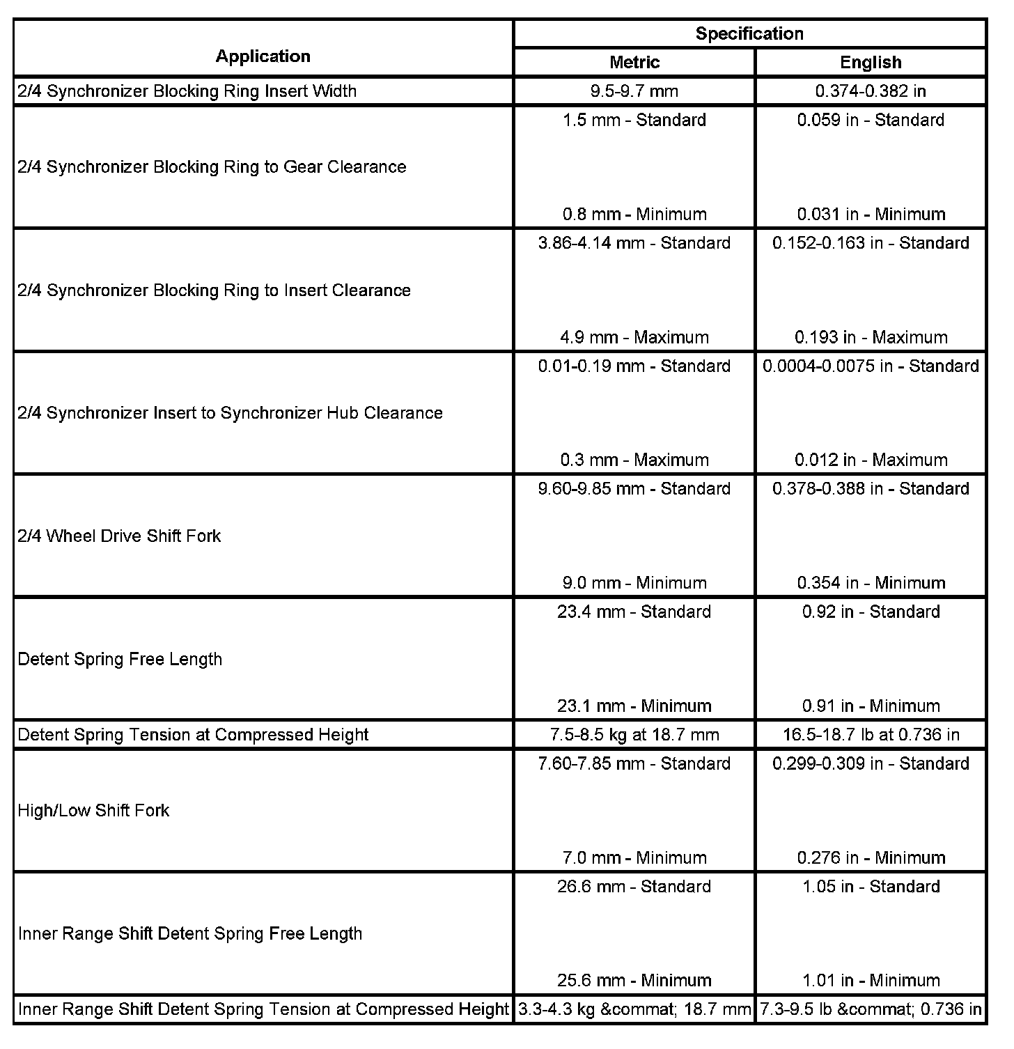 Transfer Case Mechanical Specifications
