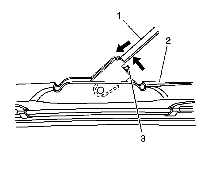 5. Release the wiper arm blade (2) from the wiper arm (1).