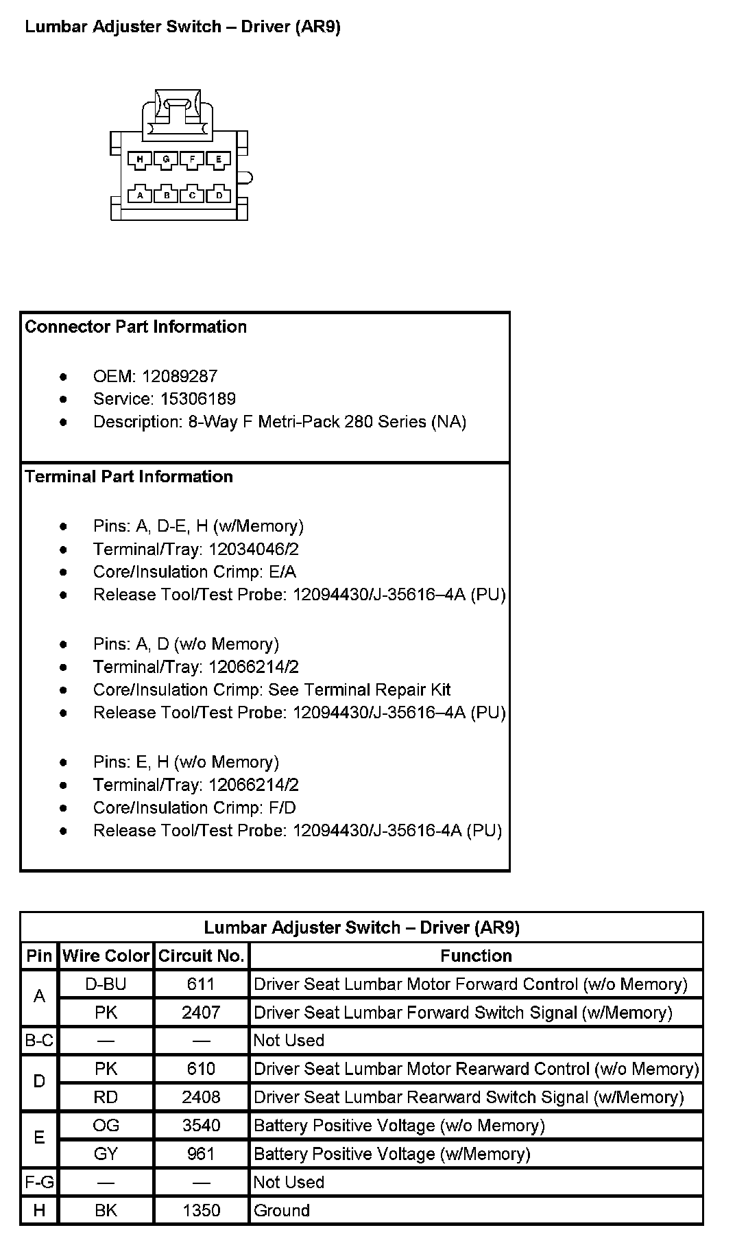 Lumbar Adjuster Switch - Driver (With RPO Code AR9):