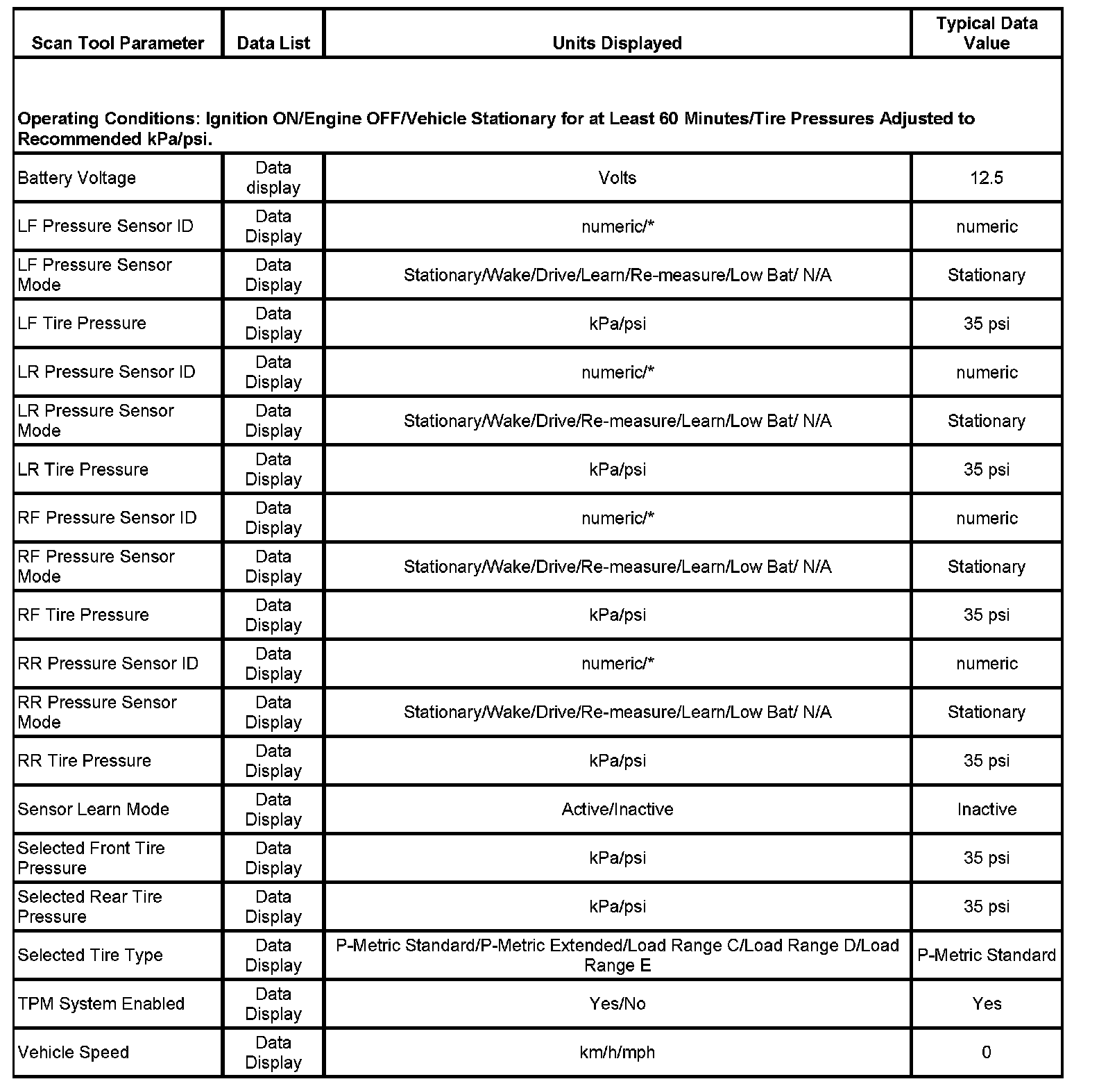 Scan Tool Data List: