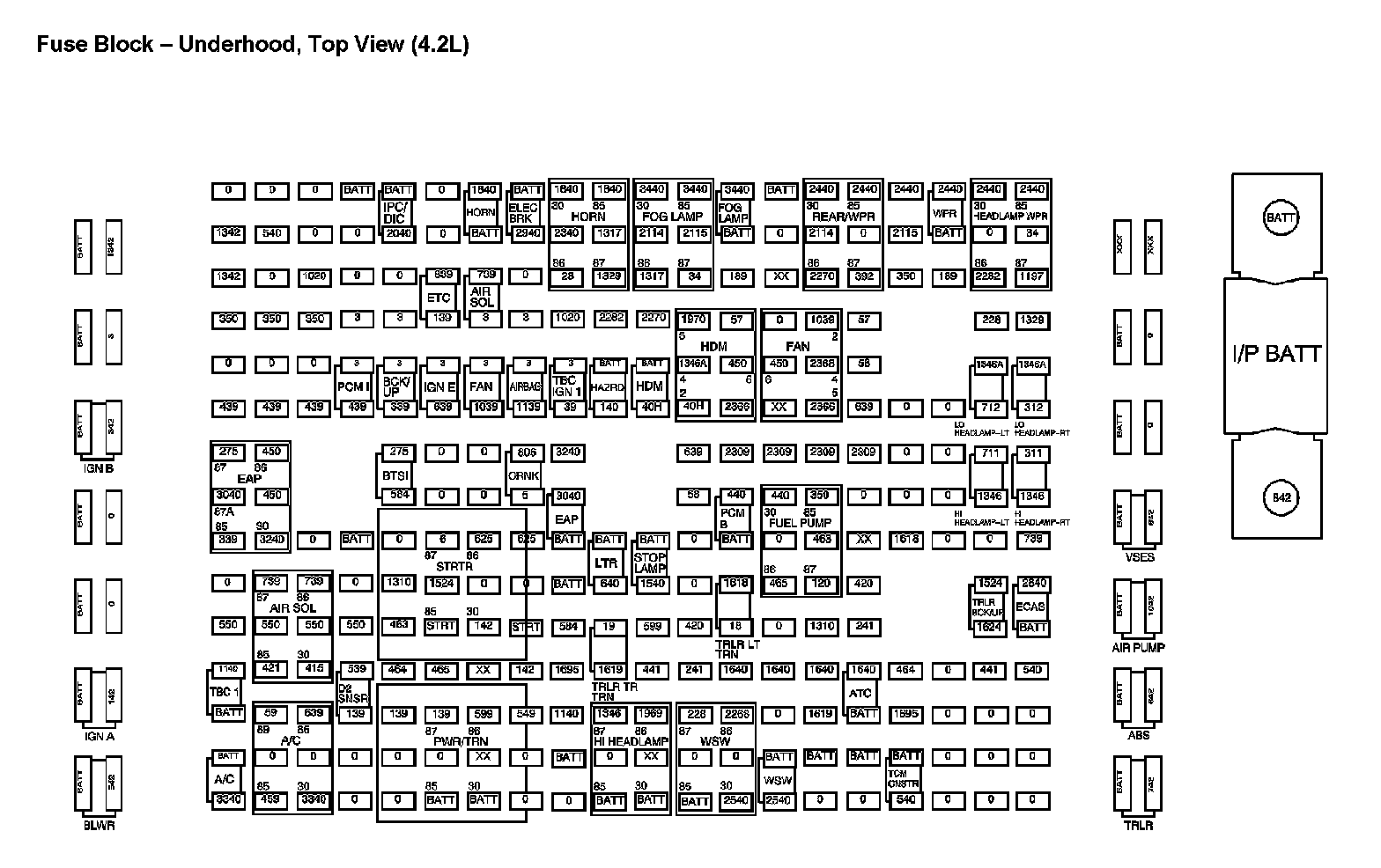 Fuse Block - Underhood, Top View (4.2L):