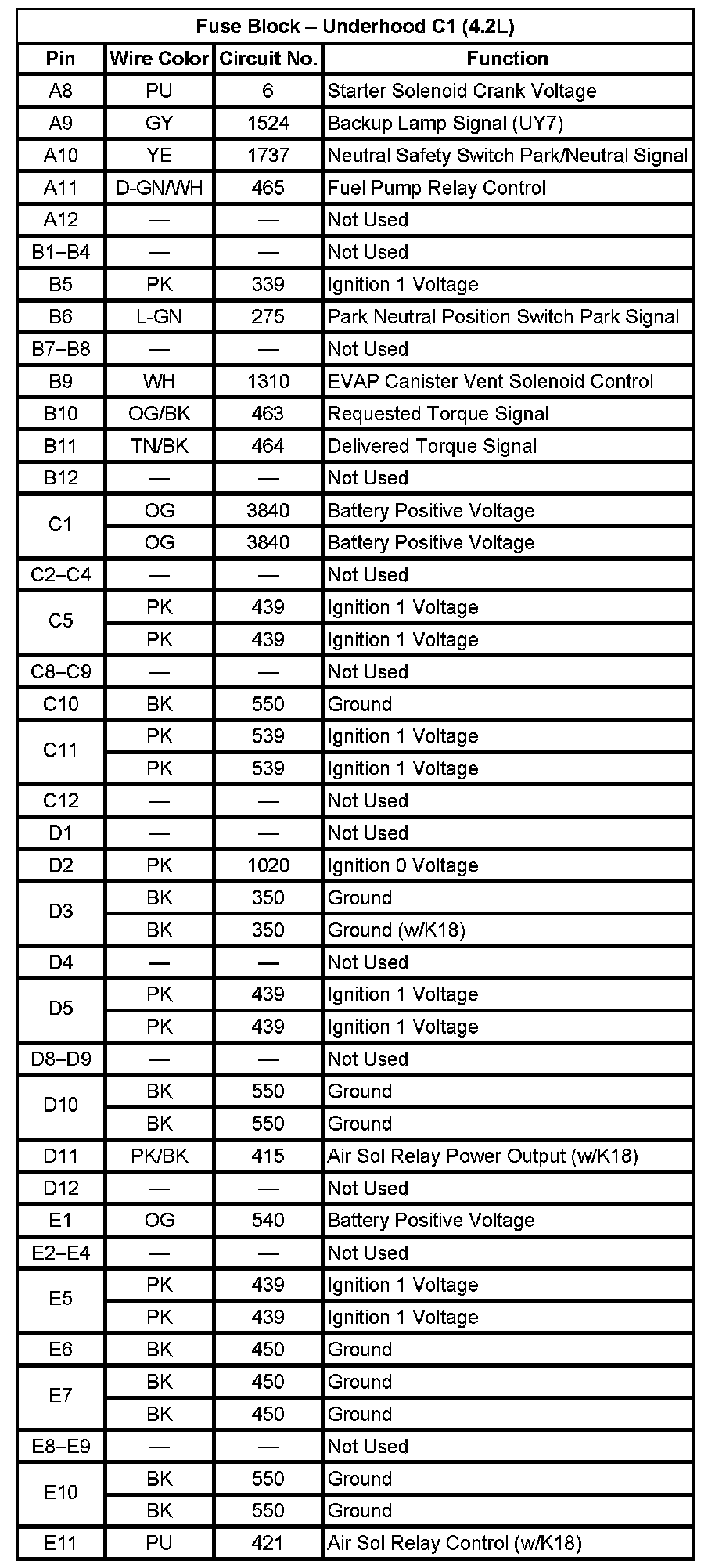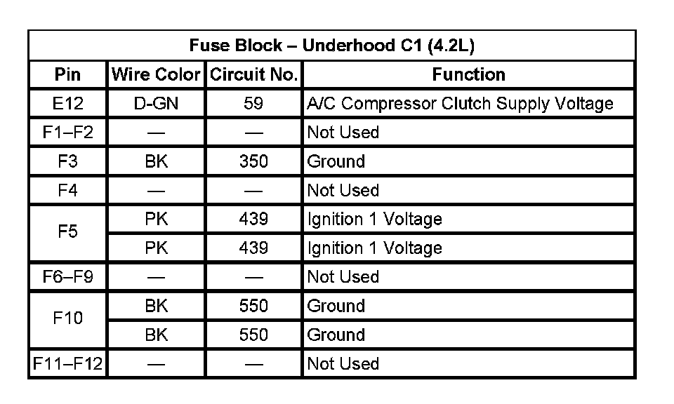 Fuse Block - Underhood C1 (4.2L):