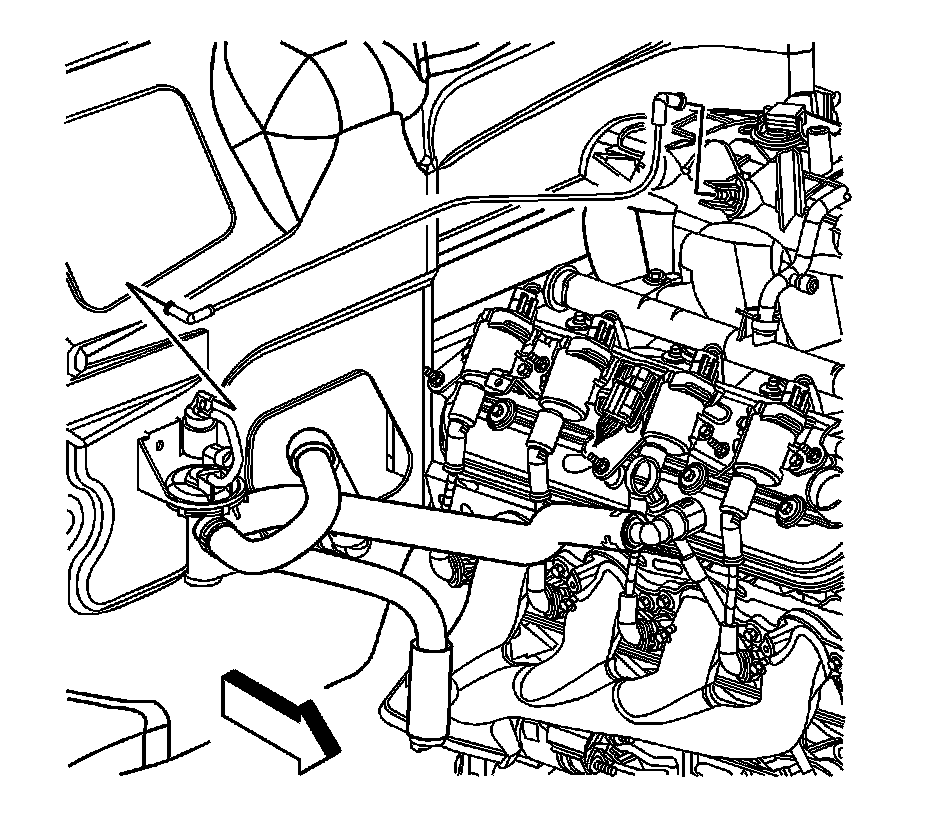 10. Install the heater water shutoff valve actuator inlet hose to the intake manifold.