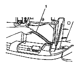 4. Raise and support the headlamp wire harness (1) to gain access to the front end sensor.