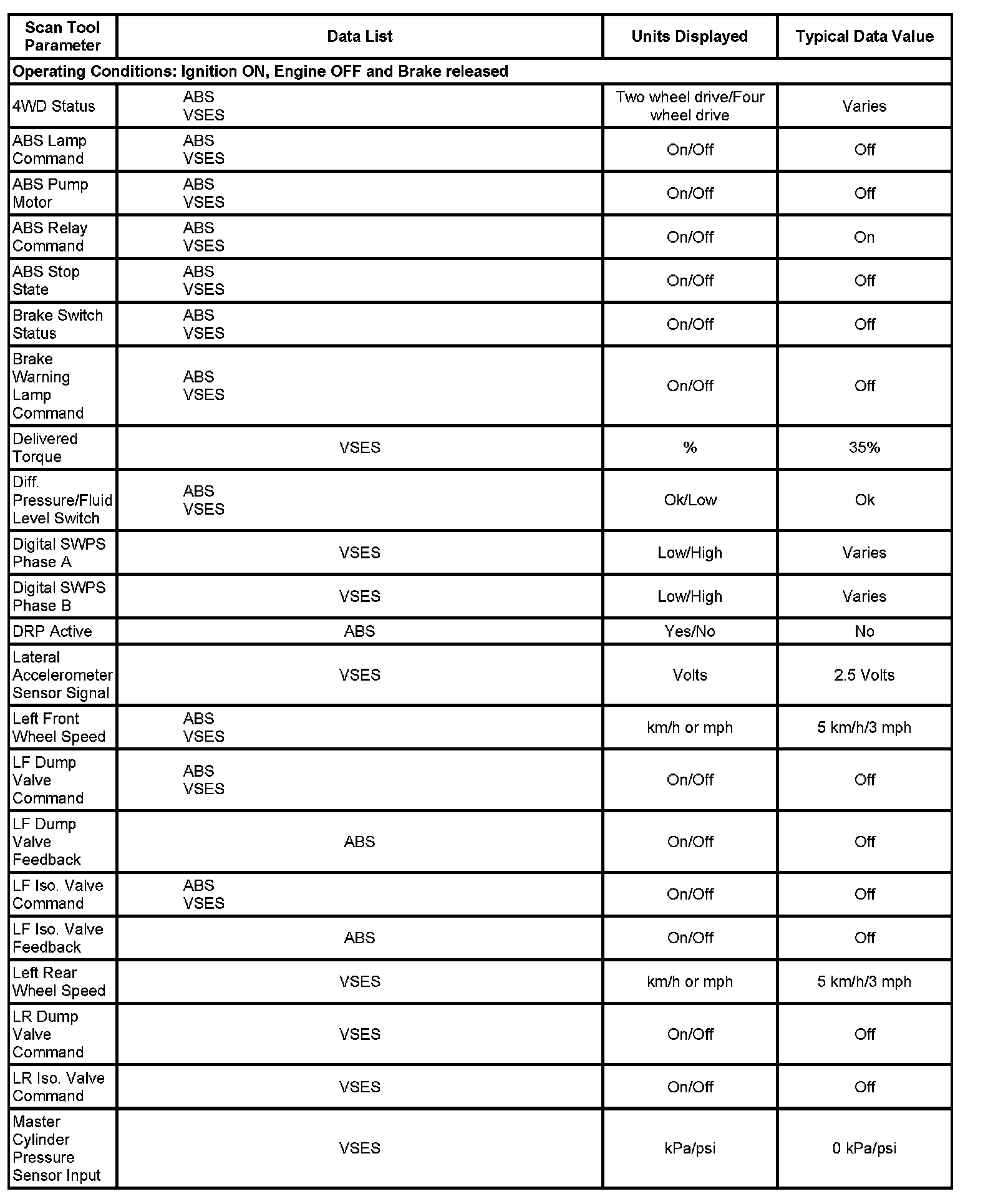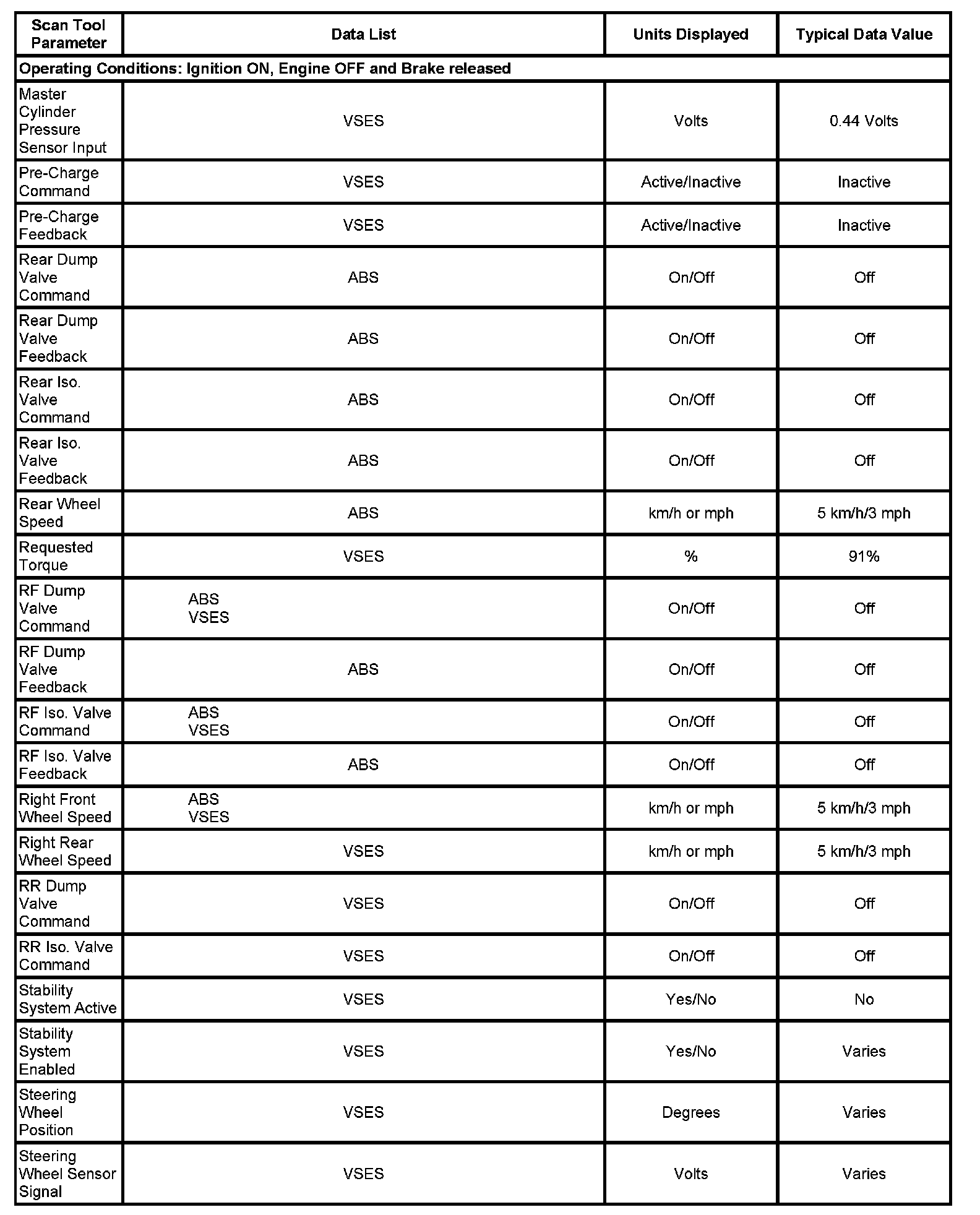 Scan Tool Data List