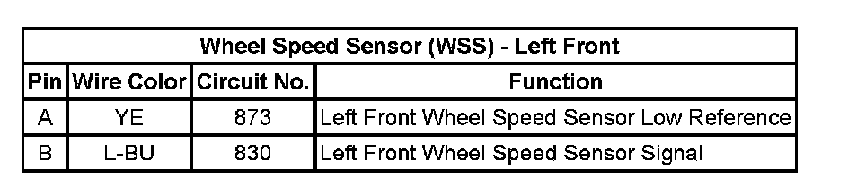Wheel Speed Sensor (WSS) - Left Front: