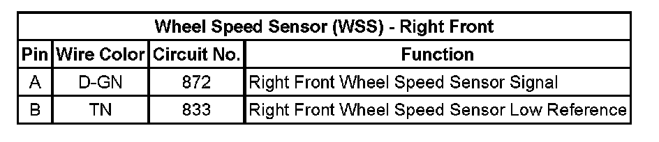 Wheel Speed Sensor (WSS) - Right Front: