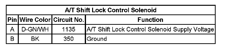 A/T Shift Lock Control Solenoid: