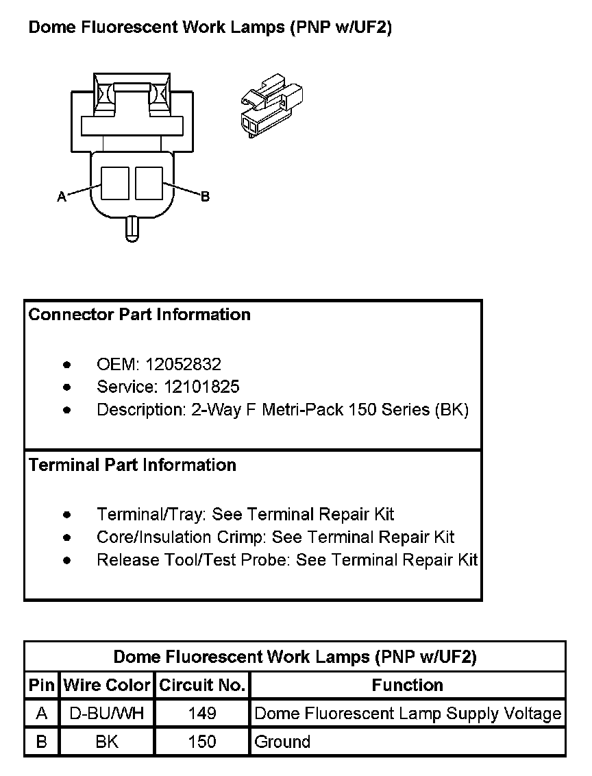 Dome Fluorescent Work Lamps (PNP With RPO Code UF2):