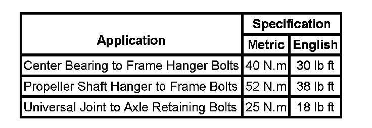 Fastener Tightening Specifications: