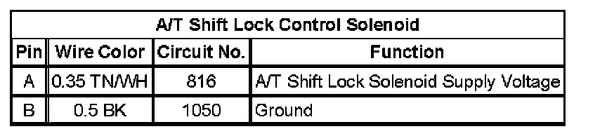 A/T Shift Lock Control Solenoid: